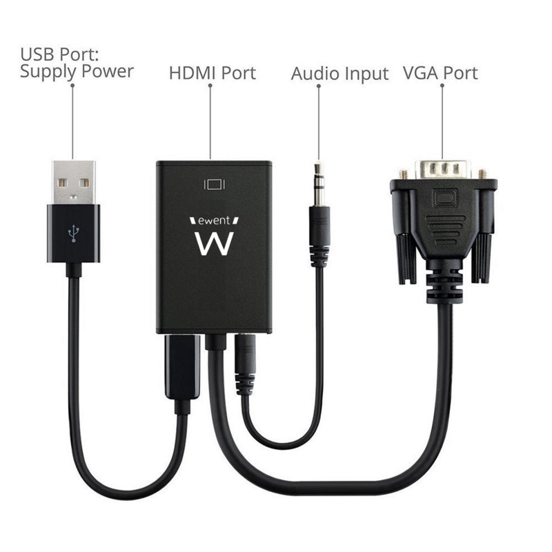 - Convertitore audio e video da segnale analogico VGA a digitale HDMI con risoluzione massima 1920 x 1080p